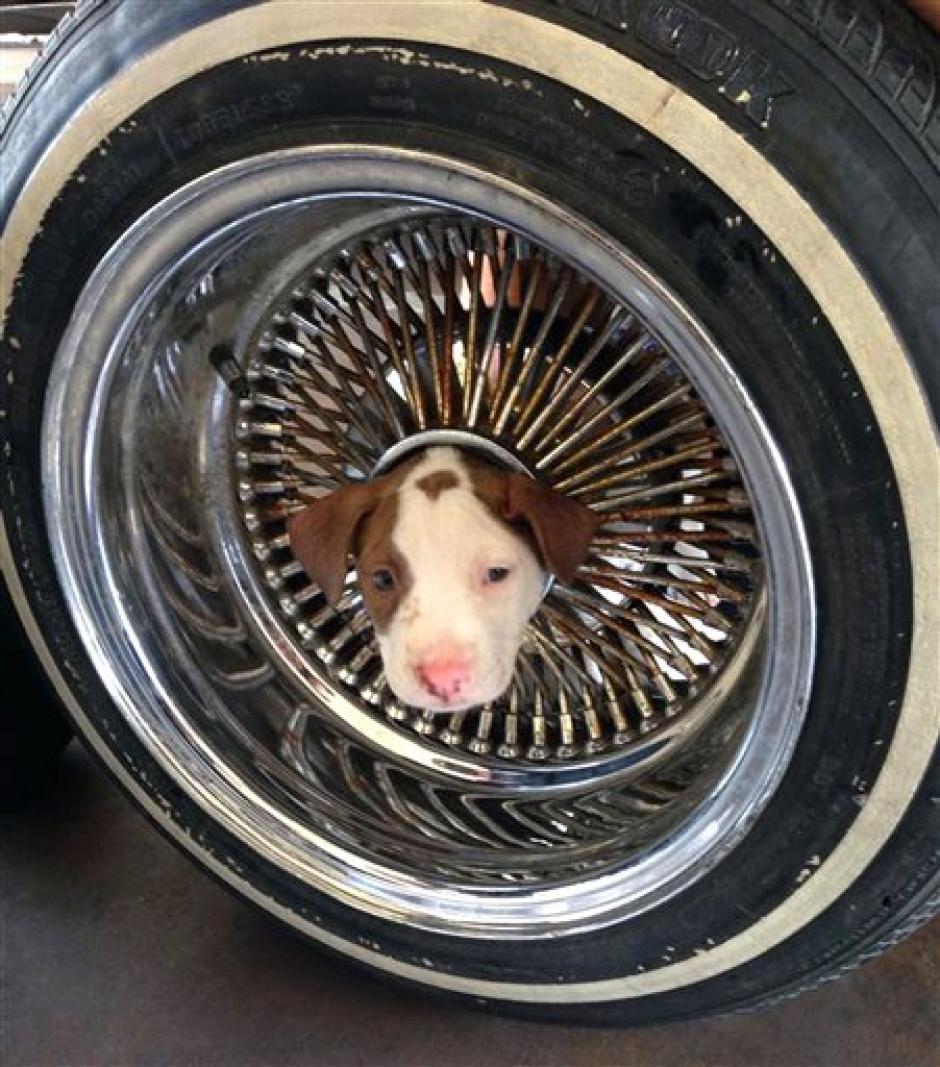 Firefighters free puppy that stuck its head through auto wheel (W/PHOTO)