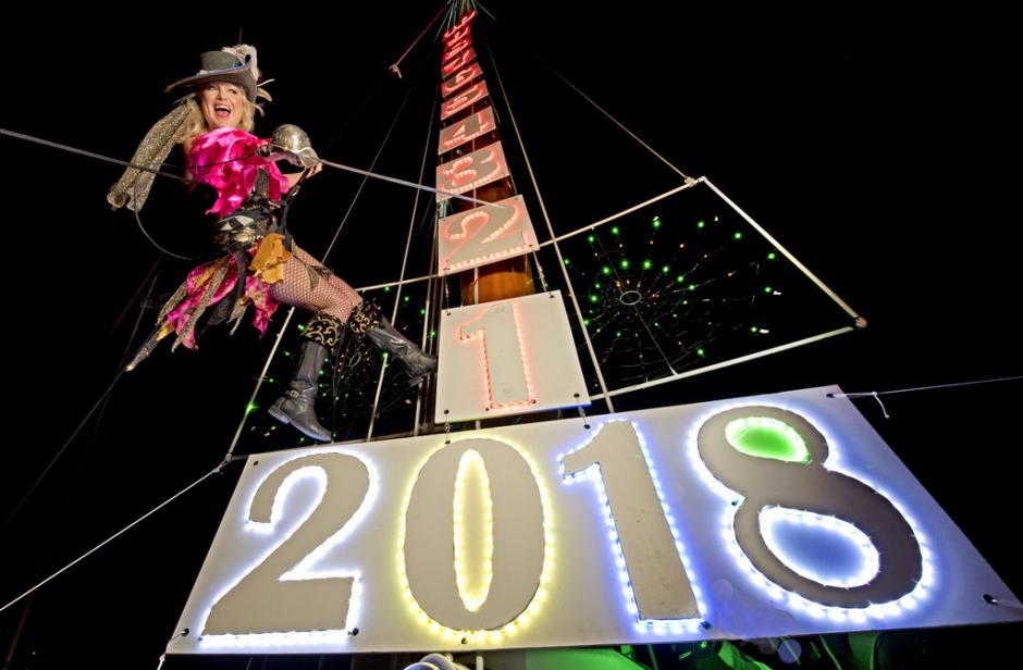Police cruisers, dump trucks and other large vehicles blocked key intersections to try to prevent anyone from plowing into crowds filled with people wearing glittery hats, tiaras and other 2018-themed paraphernalia.