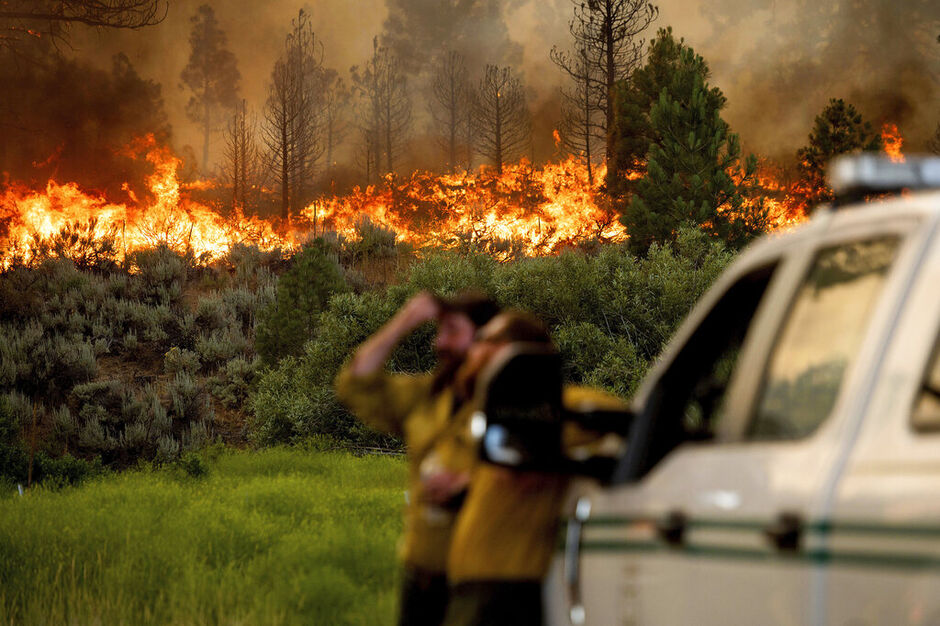 About 300 miles (483 kilometers) northwest of the sizzling desert, the largest wildfire of the year in California was raging along the border with Nevada. The Beckwourth Complex Fire — a combination of two lightning-caused fires burning 45 miles (72 kilometers) north of Lake Tahoe — showed no sign of slowing its rush northeast from the Sierra Nevada forest region after doubling in size between Friday and Saturday.