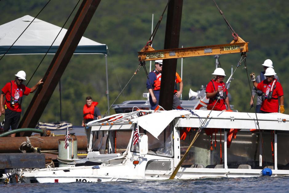 The Missouri boat entered the lake as part of a land-and-water tour despite severe weather warnings. The dead included five children.