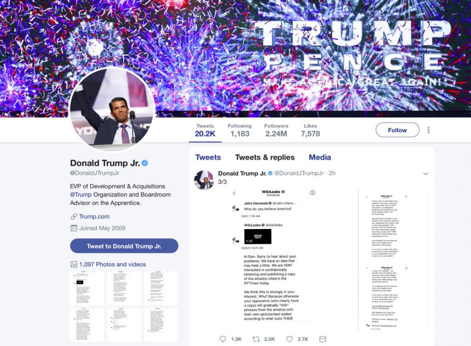 In July, the Twitter account messaged Trump Jr. to ask him to give the site emails surrounding a meeting he and other Trump associates held with Russians during the campaign. Trump Jr. then released them himself.