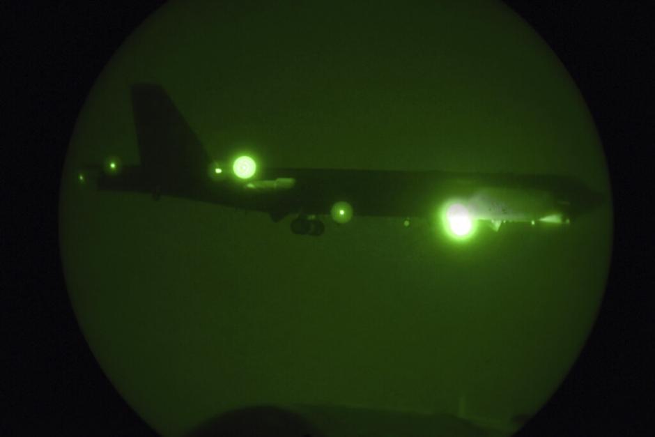 Images released by the U.S. Air Force's Central Command show B-52H Stratofortress bombers arriving at Al Udeid Air Base in Qatar on Thursday night.